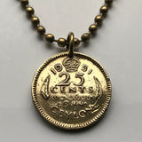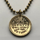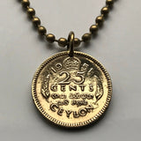 1943 British Ceylon Sri Lanka 25 Cent coin pendant Sinha flag Sinhalese Colombo Kaduwela Maharagama Kesbewa Dehiwala Lavinia Moratuwa Negombo Kotte Kalmunai Kingdom of Kandy Galle Batticaloa Jaffna Matara Buddhism Anuradhapura Polonnaruwa kingdom n002678