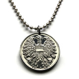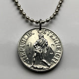 1947 Austria Osterreich 1 Schilling coin pendant Austrian eagle Habsburg shield Vienna Innsbruck Salzburg Graz Linz Villach Carinthia Sankt Polten Tyrol Babenberg Styria Klagenfurt Zell am See Wels Solden Ischgl Gmunden Vorarlberg Hallstatt n001622