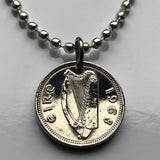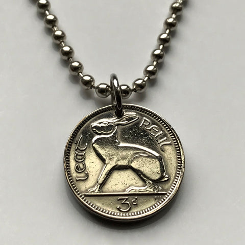 Irlanda Éire 3 Pence moneda colgante collar Conejo irlandés liebre lindo conejito Arpa gaélica Cláirseach Dublin Cork Limerick Waterford Ulster Carlow Hibernia Galway Munster Guinness St Patrick's n000121