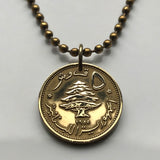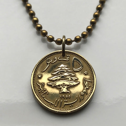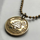 Líbano Líbano 5 piastras moneda colgante collar joyería cedro libanés león Beirut Trípoli Zahlé Sidón Aley Tiro Nabatieh Ra's Bayrut El Levante Jounieh Batroun Baalbek Valle de Beqaa Oriente Medio Árabe n000131
