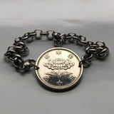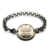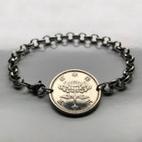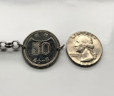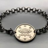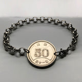 Pulsera de eslabones rolo con moneda de 50 yenes de Nippon Nihon de Japón de 1957 Planta de flores de crisantemo Joyería japonesa de Tokio Yokohama Kobe Osaka Sapporo Nagoya Fukuoka Saitima Kioto Sendai Okinawa Chiba Hiroshima Niigata b000050