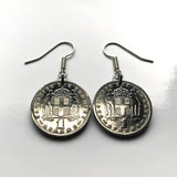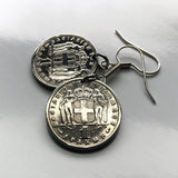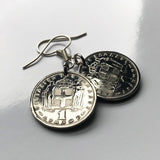 Pendientes con moneda de 1 dracma de Grecia Hellas de 1962, joyería griega helénica, cruz blanca, Heracles, Atenas, Tesalónica, Santorini, Patrás, Rodas, Mykonos, Esparta, Creta, Macedonia, Volos, Pella, Tebas, Meteora e000297