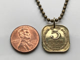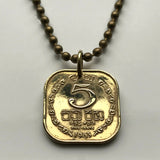 1963 Ceilán Sri Lanka 5 Cent moneda colgante león dorado Colombo Kotte Budismo cingalés Anuradhapura Kataragama Sabaragamuwa Británico n000307