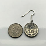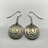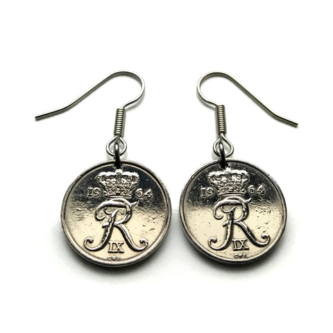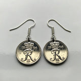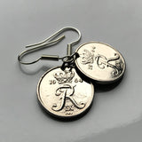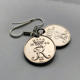 Pendientes con moneda danesa de 10 Ore inicial R Copenhague Dinamarca Nórdico Zelanda Funen Islas Feroe Dinamarca Palacio de Amalienborg rey e000107