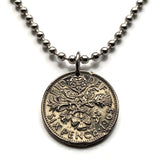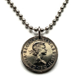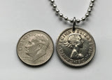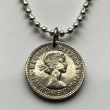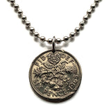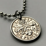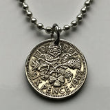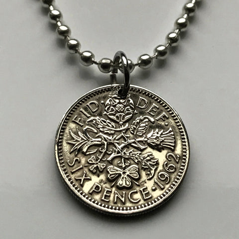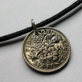 United Kingdom Great Britain 6 Pence coin pendant beach bridesmaid gift something old new English Tudor rose England Scottish thistle Scotland Irish shamrock Ireland Welsh leek Wales London Edinburgh Belfast Cardiff Manchester Bristol Newcastle n000085