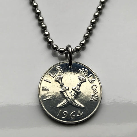 1964 Arabia del Sur Yemen 1 Fils moneda colgante cruzado Janbiya jambia dagas Sana'a Mutawakkilite Reino Zaydi Jibla Al Saleh Británico n003127
