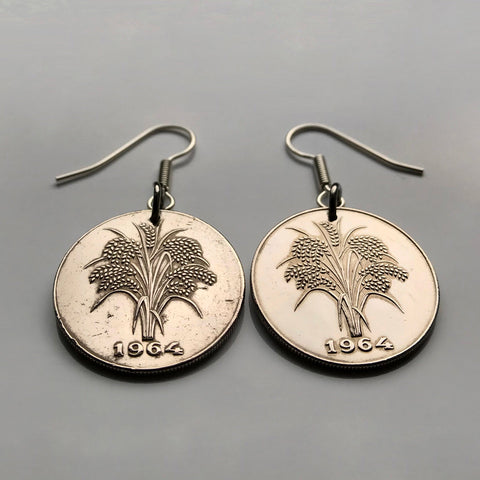 1964 Vietnam del Sur 1 Dong moneda pendientes joyería flor de planta de arroz vietnamita Hanoi Ciudad Ho Chi Minh Hoi An agricultura Da Nang Hue Nha Trang Sapa Phu Quoc Phan Thiet Hạ Long Bay época de la Guerra de Vietnam e000115