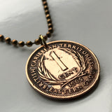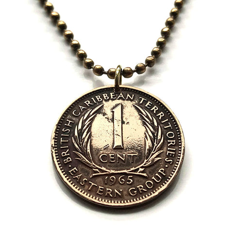 1965 British East Caribbean States 10 Cents coin pendant palm tree fronds Antigua Barbuda Dominica Grenada Saint Lucia Saint Vincent Grenadines Saint Kitts Nevis Anguilla Montserrat Martinique Trinidad Barbados Lesser Antilles Caribbees Leeward n002362