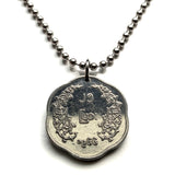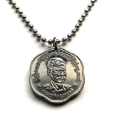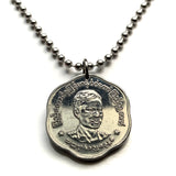 1966 Myanmar Birmania 1 Pya moneda colgante collar Mayor General Aung San Joyería birmana Bamar Yangon Naypyidaw Mandalay Bago Hpa-An Taunggyi Monywa Myitkyina Mawlamyine Magway Kayin Sagaing Kachin n003694