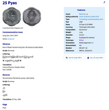 Anverso: busto del mayor general Aung San; fecha de la época birmana debajo