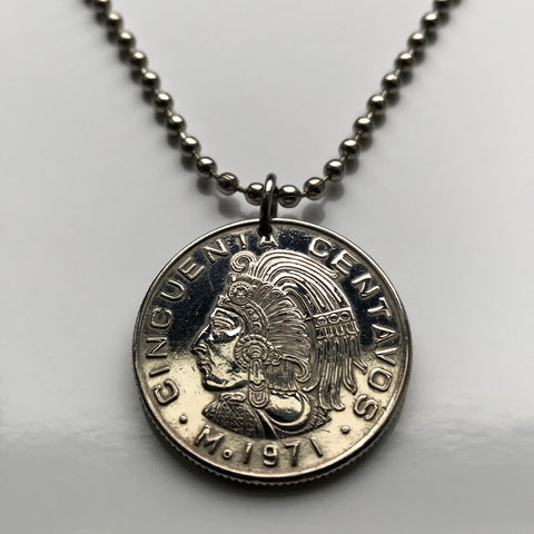 México 50 Centavos moneda colgante Cuauhtémoc gobernante azteca Tenochtitlan Guerrero Ixcateopan Ecatepec Guadalajara Puebla Juárez Tijuana Monterrey Acapulco Yucatán Cancún Oaxaca Águila mexicana n000242