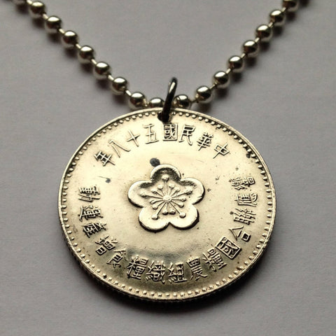 Colgante de moneda Yuan de China de Taiwán de 1969, flor de ciruelo Mei, flor de Taipei, Formosa, Taoyuan, Sun Yat-sen, revolución Xinhai, floral, botánica n.º 001290