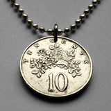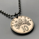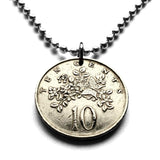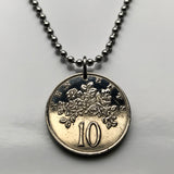 1975 Jamaica 10 Cents coin pendant butterfly crocodile pineapples alligator Kingston May Pen Montego Bay Spanish Town Mandeville Ocho Ríos Portmore Jamrock Jamdung Jamaican Patwah Patois Ackee dub ska Marcus Garvey Rastafari Bob Marley Reggae n000115