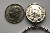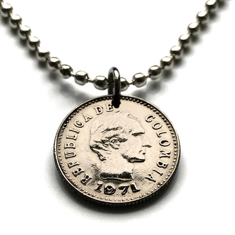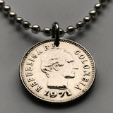 1971 Colombia 10 Cent moneda colgante collar General Santander Bogotá Medellín Cali Barranquilla Cartagena Cúcuta Soacha Soledad Bucaramanga Bello Ibagué Manizales Montería Valle del Cauca Antioquia Pereira Caldas Armenia Muisca Chibcha Quimbaya n002192