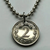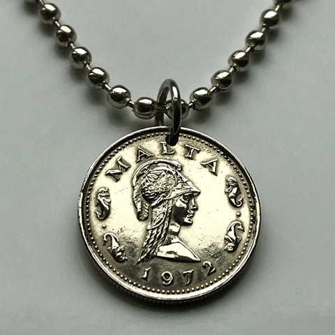 1977 Malta 2 Centavos moneda colgante collar joyería Maltesa Pentesilea Reina de las Amazonas La Valeta Żabbar Floriana Gozitans Mar Mediterráneo pesca océano Città Pinto Paola Qrendi Mnajdra Birkirkara Città Hompesch Qormi Bahía de San Pablo n002755