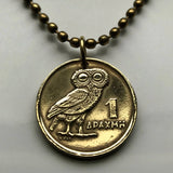 Colgante de moneda de 1 dracma de Grecia Hellas de 1973, búho griego, Atenas, Salónica, Patras, Mykonos, Esparta, Rodas, Larisa, Santorini, Corfú, Creta, diosa Atenea, Ioannina, Acrópolis helénica, Partenón, n.º 000716