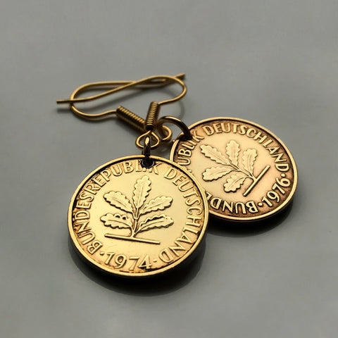 Alemania 5 Pfennig {1950-1996} República Federal DESTACANDO frente: una plántula de roble Rotulación: BUNDESREPUBLIK DEUTSCHLAND reverso: valor facial entre dos espigas de centeno • cantidad 1 par • Monedas de acero revestido de latón pulido desmonetizadas {que ya no están en circulación} • diámetro: 18,5 mm • peso: 3 g ALAMBRES PARA PENDIENTES DE ACERO INOXIDABLE 304 BAÑADOS EN ORO • Estilo: ganchos de acero para pendientes con espiral de 6 x 2 mm • Metal: acero quirúrgico bañado en oro para orejas sensibles. • Largo: 19 mm desde la parte superior hasta la parte inferior del lazo en la parte delantera • Espesor: calibre 21 • tapones de goma incluidos facebook.com/coinedJewelry Instagram.com/coinedJewelry twitter.com/coinedJewelry pinterest.com/joyasconmonedas tumblr.com/blog/joyasconmonedas