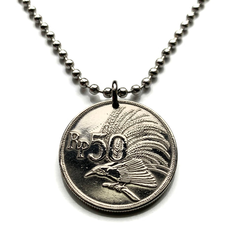 Indonesia moneda colgante collar joyería sin patas Gran ave del paraíso plumas coloridas Bali Bird Park Aru Islas Maluku Yakarta Surabaya Bekasi Bandung Medan Depok Tangerang Palembang Semarang Makassar Tangerang del Sur Batam Bandar Lampung Bogor Pekanbaru Padang Malang Samarinda Tasikmalaya Denpasar Molucas Sulawesi Celebes Islas de la Gran Sonda Nueva Guinea Mirlo de cerveza Papúa Jayapura Sumatra Java Sulawesi Borneo Banten Sulawesi del Sur Islas Riau Kalimantan Oriental idioma bahasa malayo