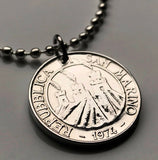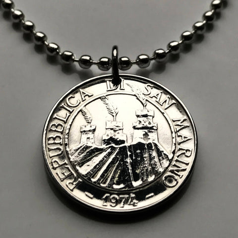 1974 San Marino Italia 10 Lire moneda colgante collar joyería Monte Titano 3 torres Italian Città Saint Marinus Palazzo Pubblico Piazza della Libertà n002366