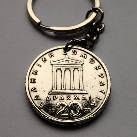 Llavero con moneda de 20 dracmas de Grecia de 1984, Partenón griego, Atenas, Pericles, Macedonia helénica, Esparta, Ática, Corinto, Argos, Tebas, Kos k000002