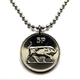 1978 Irlanda Éire 5 Pence moneda colgante collar joyería toro arpa gaélica irlandesa Cláirseach Dublin Cork Limerick Galway Waterford Guinness Día de San Patricio Hibernia Connacht Leinster Derry Drogheda n000508