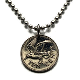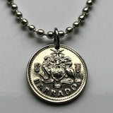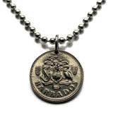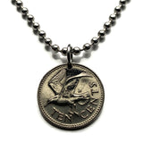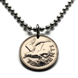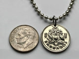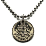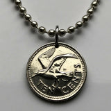 Barbados 10 Cents coin pendant Laughing gull bird Trident 3 pronged spear dolphin fish pelican Bridgetown Oistins Holetown Speightstown Saint Michael Six Cross Roads South Point Lighthouse drietand Neptune sea god aquaman n000571