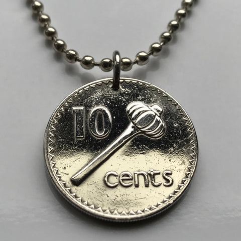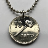 Collar colgante con moneda de 10 centavos de Fiji de 1987, joyería, club de lanzamiento, Ula Tava Tava, Suva Ba, Costa de Coral, Pacífico Sur, Polinesia, Reino Unido, collar británico n002281