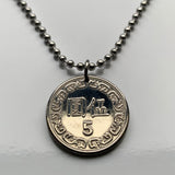1981 Taiwan Republic of China ROC Formosa 5 Dollar coin pendant necklace Chiang Kai-shek military leader Kuomintang sun Taipei Xinhai Revolution Blue Sky White Sun Hokkien Taichung Kaohsiung Banqiao Chinese shÃchen Tainan Hsinchu Keelung Chiayi n003679