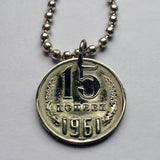 Colgante de moneda de 15 kopeks de la URSS CCCP, Unión Soviética, Rusia comunista, Moscú, San Petersburgo, Kazán, Ekaterimburgo, Sochi, socialista, Rossiya, comunismo, Lenin, Stalin, Volgogrado, martillo y hoz n000856