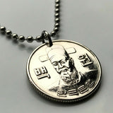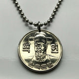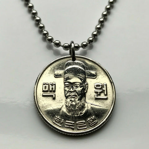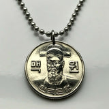 Corea del Sur 100 Won moneda colgante collar joyería Almirante coreano Yi Sun-sin héroe nacional Seúl Busan Incheon Daegu Hangul Gyeonggi Koryŏ Imjin guerra Japón Daejeon Gwangju Suwon Batalla de Myeongnyang n000554