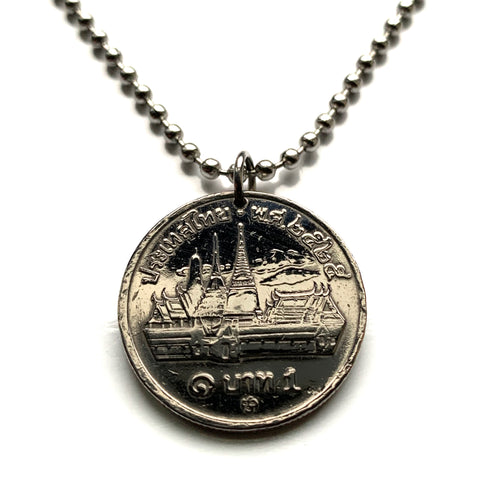 1982 Tailandia Siam 1 Baht moneda colgante Wat Phra Kaew Templo Budista Bangkok Gran Palacio Rey Bhumibol Adulyadej Siamés Dambro Indochina Mueang Thai Isan Kam Mueang Pak Thai Phra Nakhon n003149