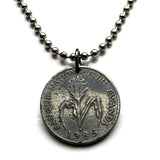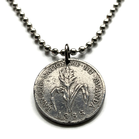 1985 Rwanda 1 Franc coin pendant Rwandese Pearl Millet flower African finger Millet Plant cereal crops grains Kinyarwanda Kigali Gisenyi Banyarwanda Abahutu Hutu Bantu Batwa Tutsi Twa people Butare Gitarama Ruhengeri Byumba Cyangugu Kibuye n001305c