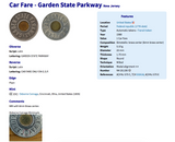 1988 EE. UU. Estados Unidos de América Nueva Jersey GSP Garden State Parkway Car Token moneda colgante collar joyería Autoridad de Carreteras de Nueva Jersey Transporte de tránsito Bergen Ocean One Fare Cape May Montvale Pine Barrens Byway Lower Township Atlantic County Monmouth Burlington Middlesex Union Essex Passaic