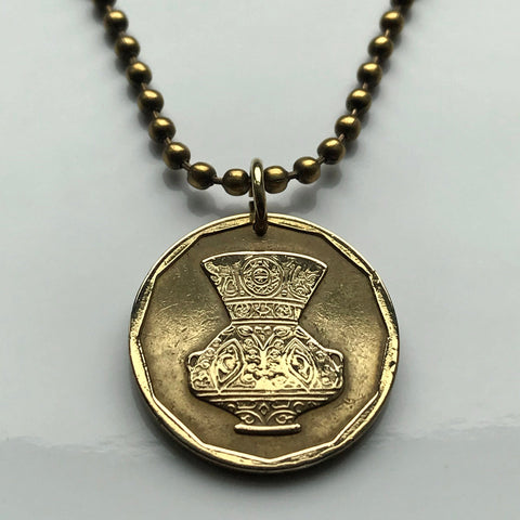 Colgante de moneda de 5 qirsh de Egipto de 1992, jarrón egipcio antiguo, jeroglíficos de El Cairo, escritura islámica mítica del Nilo, joyería de piastras de la República Árabe n.º 000933