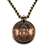 1992 Rumania 1 Leu moneda colgante collar joyería Banco Nacional NBR Bucarest Iași Moldavia Valaquia Constanța Craiova Brașov Galați Sibiu Transilvania Ploiești Sinaia Dobruja Oradea Bran Peleș Castillo de Drácula n003631