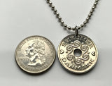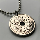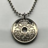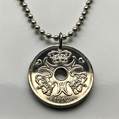 1992 Denmark Danmark 2 Kroner coin pendant Danish Royal crown initial M Copenhagen Aarhus Odense Aalborg Esbjerg Randers Jutland Dane Viking Danskere Scandinavia Nordic Zealand Funen Amalienborg Faroese Norse Kolding Horsens Frederiksborg Hillerød n001435