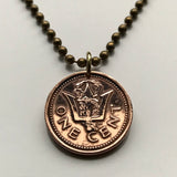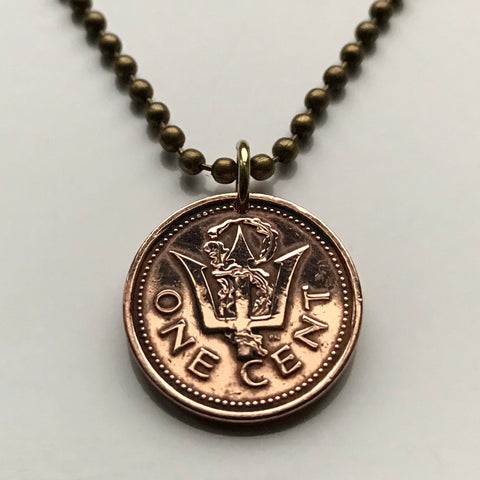 Barbados 1 Cent coin pendant Barbadian Bajan Poseidon Broken Trident 3 pronged spear dolphin fish pelican Bridgetown Oistins Holetown Speightstown Saint Michael Six Cross Roads South Point Lighthouse drietand Neptune sea god aquaman n000010