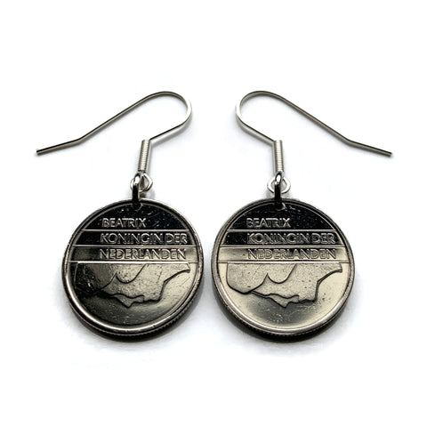 1998 Netherlands Nederland Holland 25 Cent coin earrings Dutch Queen Beatrix Amsterdam Rotterdam The Hague Utrecht Eindhoven Groningen Tilburg Almere Breda Nijmegen De Wallen Randstad Gouda Delft Leiden Low Countries Ajax Zeeland Apeldoorn Haarlem e000609