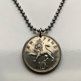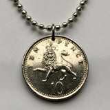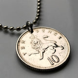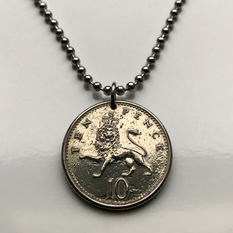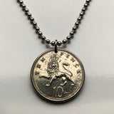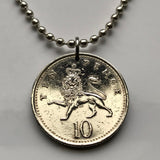 Collar colgante con moneda de 10 peniques de Inglaterra de 1992, joyería, león inglés, Londres, Manchester, Birmingham, Sheffield, Liverpool, Leeds, Newcastle, Reading, Portsmouth, Norwich, Essex, Kent, Gran Bretaña n001673