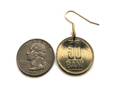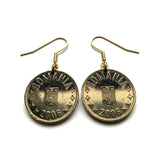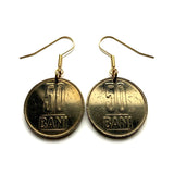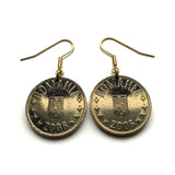 2006 Romania 50 Bani coin earrings golden eagle Bucharest Cluj-Napoca Iasi Moldavia Wallachia Constanța Timisoara Brasov Craiova Galati Oradea Constanta Ploiesti Braila Sibiu Transylvania Vlad Dracula Impaler Vlachs Poenari Michael the Brave e000598