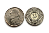 Antillas Holandesas Curacao Aruba Sint Maarten Bonaire Saba Sint Eustatius moneda colgante collar joyería Flor de azahar pantalón floral botánico Willemstad Caribe holandés Sotavento Antillas Menores Islas ABC Nederlandse Papiamentu Pais Kòrsou Curazao Jan Thiel Playa Cas Abou Oranjestad Kralendijk Philipsburg The Bottom Land Curazao