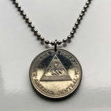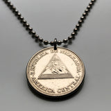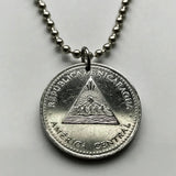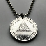 2002 Nicaragua 1 Cordoba moneda colgante collar joyería Managua Nicoya Nicaraguenses pirámide Sumo Rama Bilwi Jinotega Bluefields Ocotal Centroamérica n001432