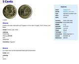 2013 Singapore Singapura 5 Cent coin pendant Merlion Lion City Singa Laut Esplanade Theatres on the Bay Durian Bedok Yishun Choa Chu Kang Punggol Ang Mo Kio Bukit Batok Confederate Malay Queenstown Bukit Merah Woodlands Jurong Tampines Sengkang n003792