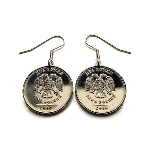 Pendientes de moneda de 2 rublos de Rusia Rossiya 2014, joyería de moda, águila bicéfala, Moscú, San Petersburgo, Novosibirsk, Ekaterimburgo, Nizhni Nóvgorod, Kazán, Sochi, Ivanovo, Saransk, Peterhof, Piatigorsk, Astracán, Samara e000562