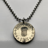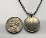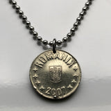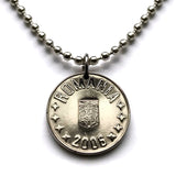 2015 Romania 10 Bani coin pendant golden eagle Bucharest Cluj-Napoca Iasi Moldavia Wallachia Constanța Timisoara Brasov Craiova Galati Oradea Constanta Ploiesti Braila Sibiu Transylvania Vlad Dracula Impaler Vlachs Poenari castle Michael the Brave n001718