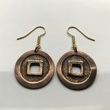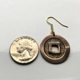 • Moneda de cobre fundido desmonetizada (ya no está en circulación) con agujero cuadrado