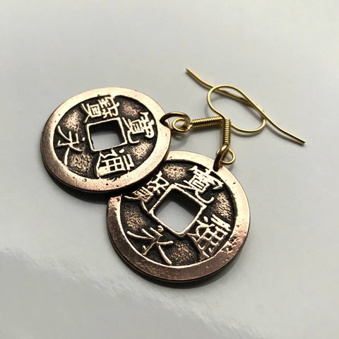 antiguo 1668-1700 Japón 1 Mon pendientes de monedas en efectivo japonés Kanei Tsuho Kanji Shogun Edo Tokio último Samurai bunsen Nippon pendiente de gancho e000098