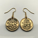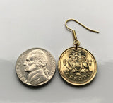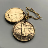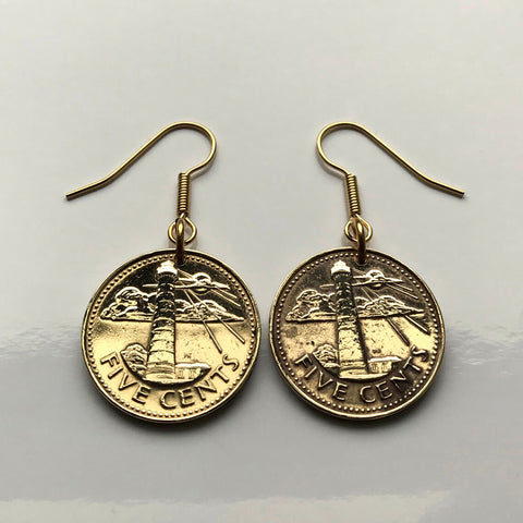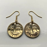 Barbados 5 Cents coin hook earrings Barbadian jewelry Bajan South Point Lighthouse Bridgetown Broken Trident dolphin fish pelican beach Lesser Antilles drietand Caribbees West Indies Crop Over Festival Errol Barrow Grand Kadooment Day Bimshire e000186