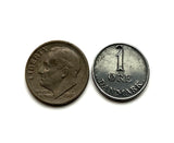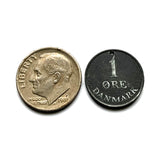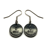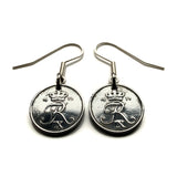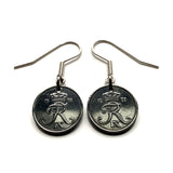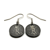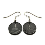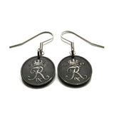 Denmark Danmark 1 Ore coin earrings Danish crown initial R Copenhagen Aarhus Odense Aalborg Esbjerg Danes Randers Kolding Horsens Funen Jutland Viking Scandinavia Nordic Roskilde Syddanmark Aabenraa Hillerød Zealand Vendsyssel Faroese Amager e000571