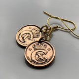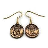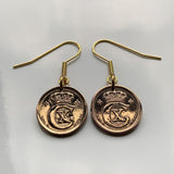Denmark Danmark Ore coin earrings Danish royal crown initial C X Copenhagen Aarhus Odense Aalborg Esbjerg Dane Randers Kolding Horsens Funen Jutland Viking Scandinavia Nordic Roskilde Syddanmark Aabenraa Hillerød Zealand Vendsyssel Faroese Amager e000531